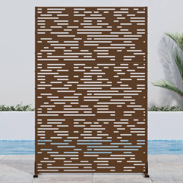 72 in. H x 47 in. W Outdoor Metal Privacy Screen Garden Fence Wave Pattern Wall Applique in Brown