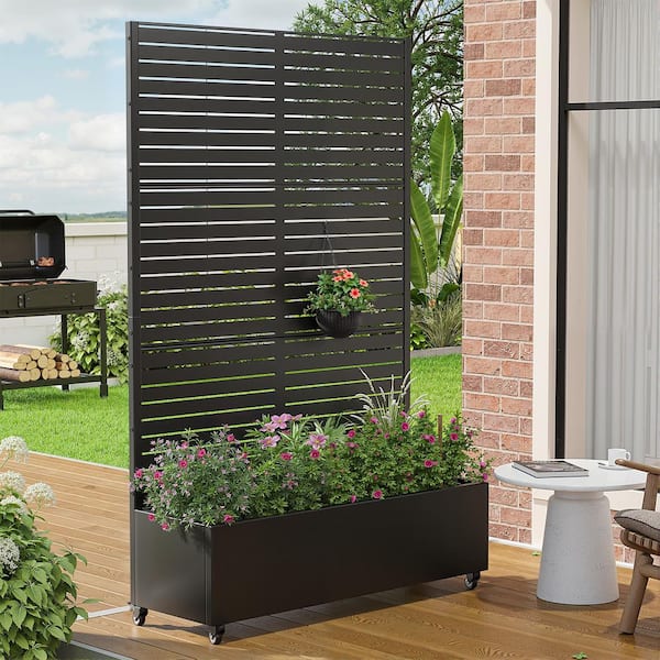 72 in. H x 47 in. W Rectanglar Black Outdoor Metal Privacy Screen Planter Box Wall Decor in Louvered Pattern
