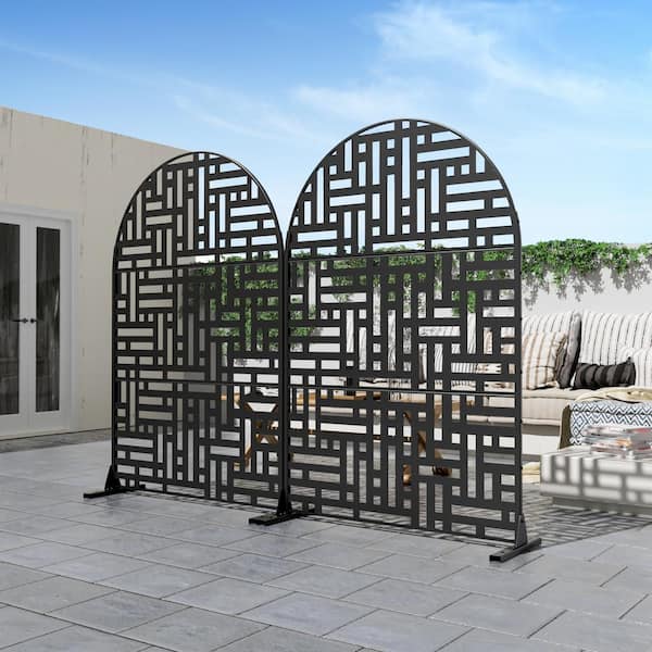 72 in. x 47 in. Arched-Top Black Privacy Screen Galvanized Freestanding Panel