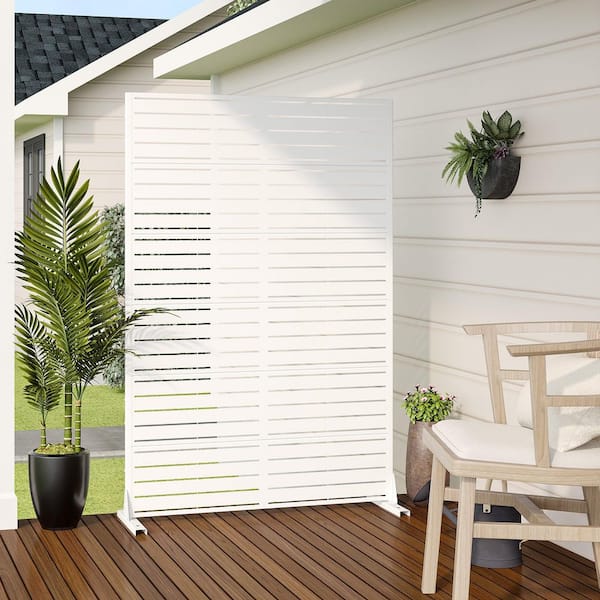 72 in. x 47 in. Outdoor Metal Privacy Screen Garden Fence in Louver Pattern in White