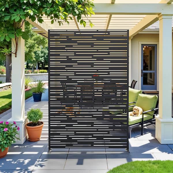 72 in. x 47 in. Outdoor Metal Privacy Screen Garden Fence in Shine Pattern in Black, Wall Decal