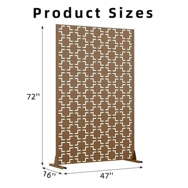 72 in. x 47 in. Outdoor Metal Privacy Screen Garden Fence in Square Pattern in Brown