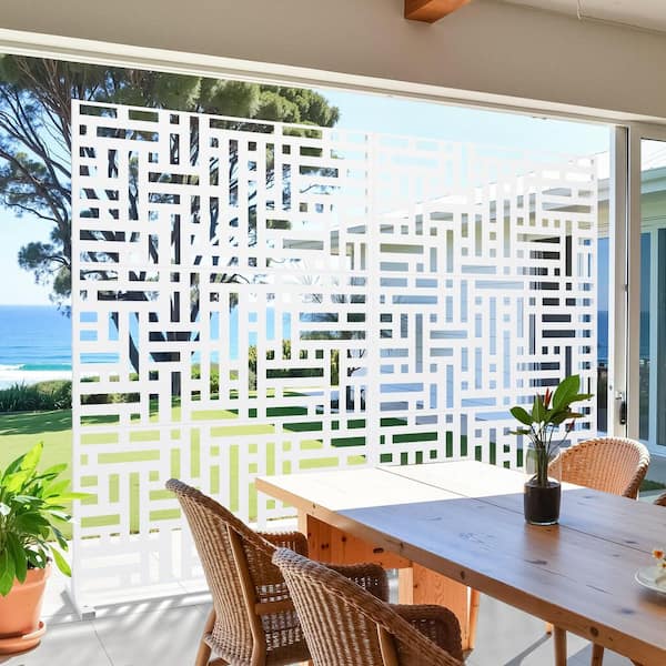 72 in. x 47 in. Outdoor Metal Privacy Screen Garden Fence in Streets Pattern in White