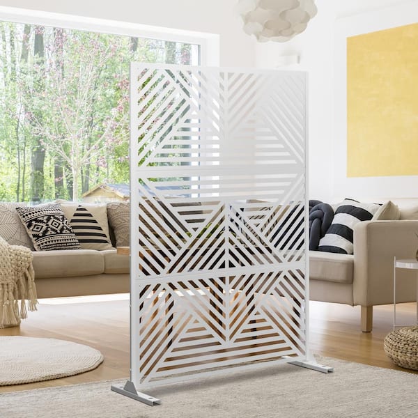 72 in. x 47 in. Outdoor Metal Privacy Screen Garden Fence in Zodiac Pattern in White