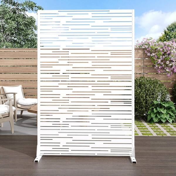 72 in. x 47 in. White Outdoor Metal Privacy Screen Garden Fence