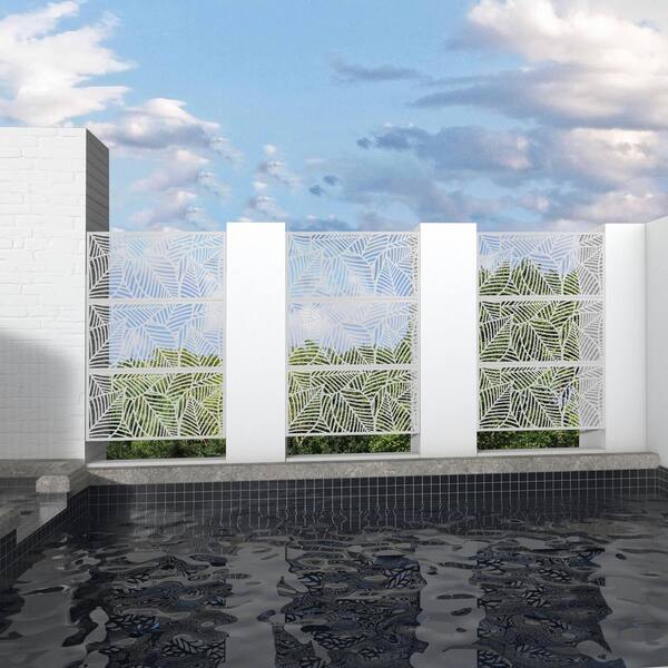 75 x 48 in. White Modern Outdoor Screen Privacy Screen with Leaf Design Wall Decal