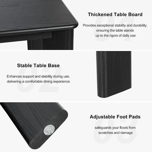 Black Rectangle Wood 79 in. 4-Legs Kitchen Table Dining Table Seats 8