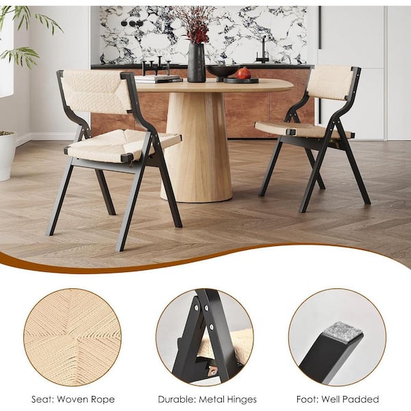 Black-natural Wood Folding Chair for Kitchen & Dining Room (Set of 2)