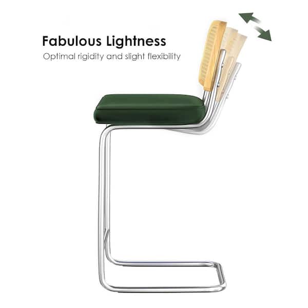 Dark Green Upholstered Velvet 30 in. Height Bar Stool with Rattan Back (Set of 2)