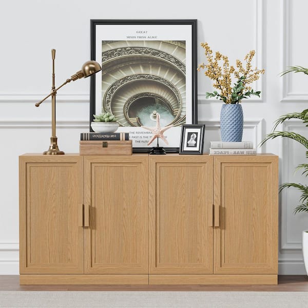 Light Brown Wood 62 in. Buffet Sideboard Kitchen Storage Pantry Cabinet with Adjustable Shelves