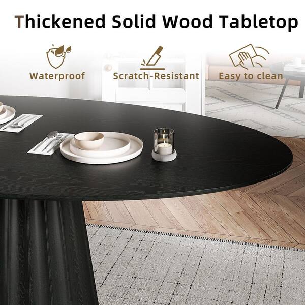 Modern Black Solid Wood 67 in. Pedestal Dining Table Seats 6