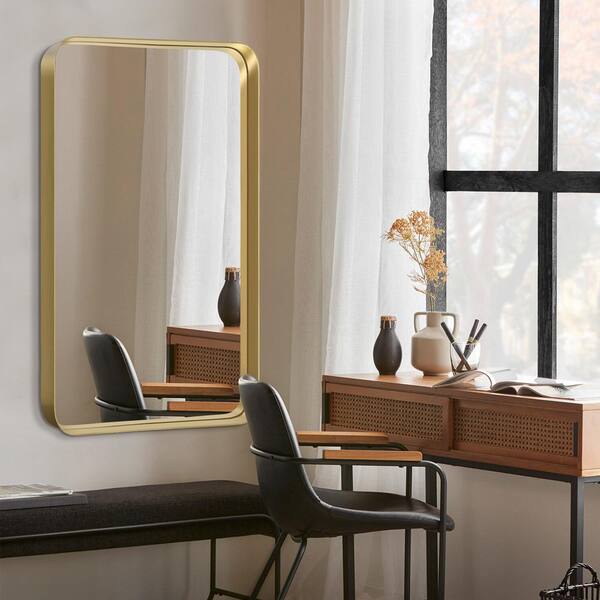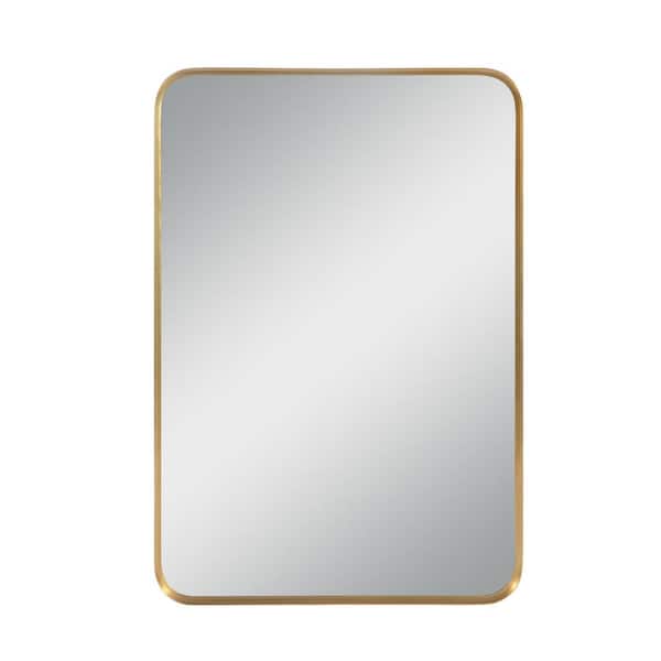 Modern Rectangle 32 in. W x 50 in. H Aluminium Alloy Deep Framed Decorative Mirror With Rounded Corner In Gold