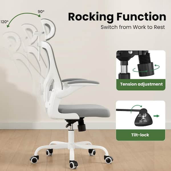 Polyurethane Adjustable Height Office Tesk Chair in Gray with Adjustable Lumbar Support and Flip-up Armrests