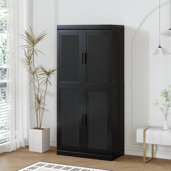 Rattan Wood Black 36 in. H Storage Cabinet Sideboard with Adjustable Shelves