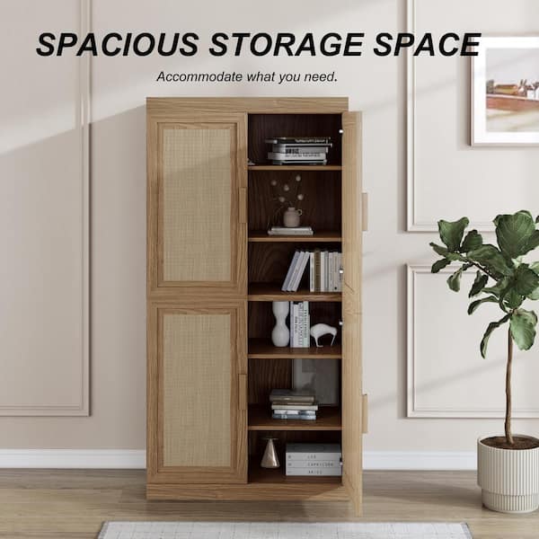 Rattan Wood Natural 31 in. H Storage Cabinet Sideboard with Adjustable Shelves
