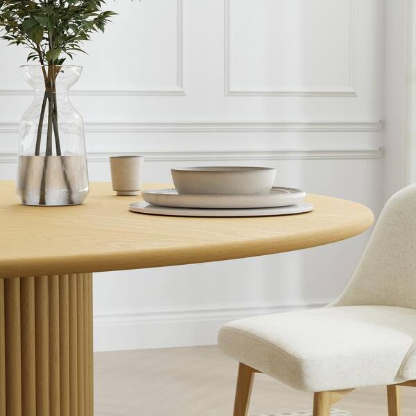 Round Oak Wood 46 in. Column Base Dining Table Seats 4