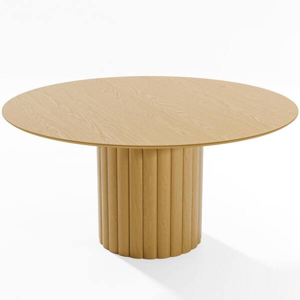 Round Oak Wood 60 in. Column Base Dining Table Seats 8