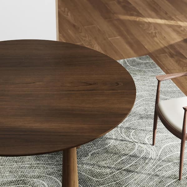 Round Walnut Solid Wood 59 in. Kitchen Tables 4-Legs Dining Table Seats 8