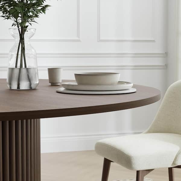 Round Walnut Wood 46 in. Column Base Dining Table Seats 4