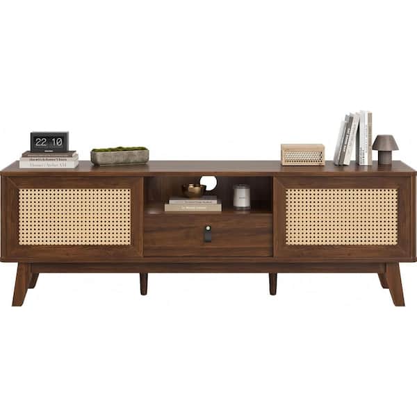Wood TV Stand for Up to 70 in. TVs Entertainment Center with Storage in Brown