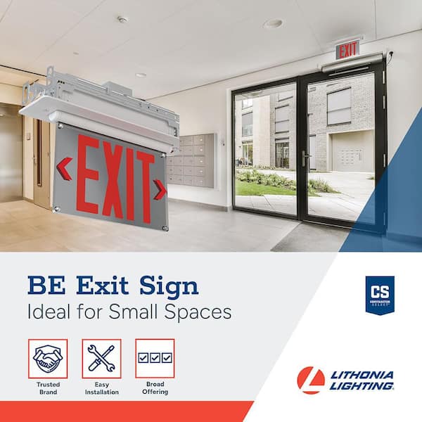 Basics Edge-Lit 120-Volt Integrated LED White Surface and Recessed Mount Exit Sign with Red Letters