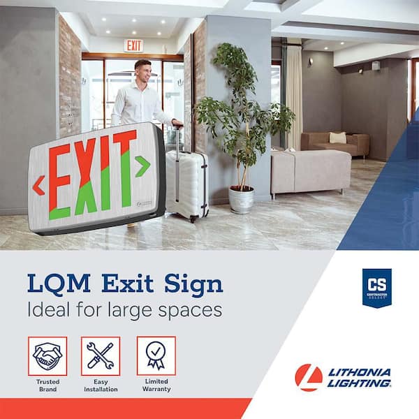 Contractor Select LQM Series 120-277-Volt Integrated LED Brushed Silver and Red and Green Exit Sign