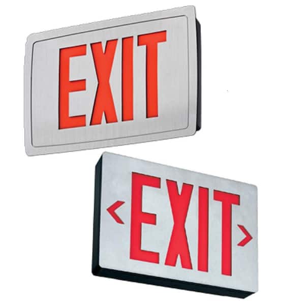 Signature 1.2-Watt Brushed Silver and Red Integrated LED Exit Sign
