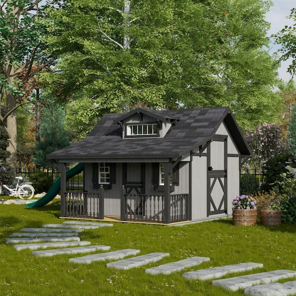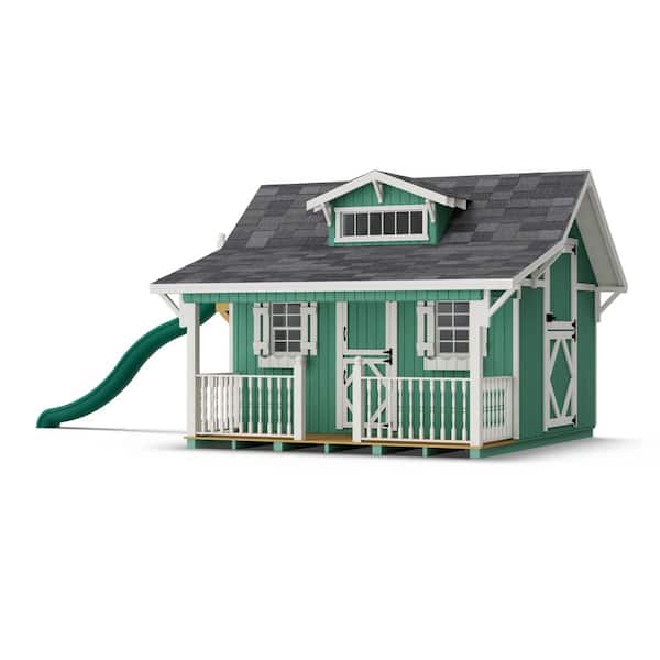 11 ft. x 10 ft. Craftsman Outdoor Wood Playhouse with Floor, Slide