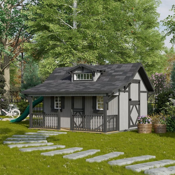 11 ft. x 12 ft. Craftsman Outdoor Wood Playhouse with Floor, Slide