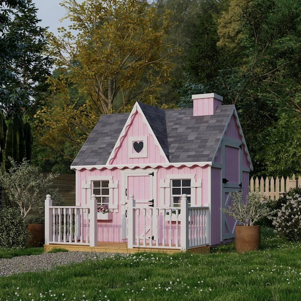 6 ft. x 8 ft. Victorian Outdoor Wood Playhouse with Floor, Deck and Rail