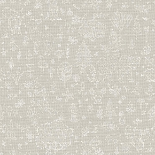 Little Explorers 2 Grey Forest Animals Matte Finish Non-Pasted Non-Woven Wallpaper Roll