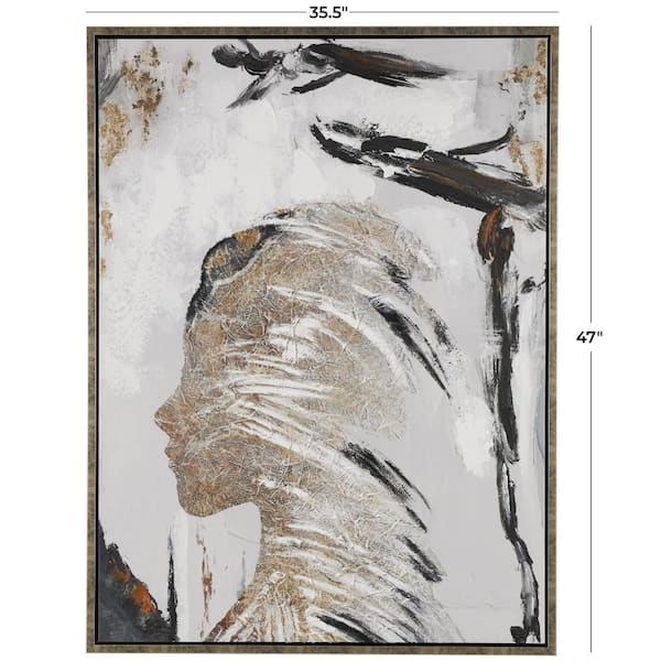 1- Panel Abstract Women's Profile Framed Wall Art with Gold Foil Details and Black Accents 47 in. x 36 in.