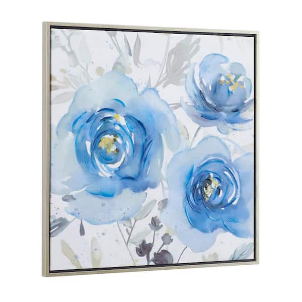 1- Panel Floral Framed Wall Art with Silver Frame 32 in. x 32 in.