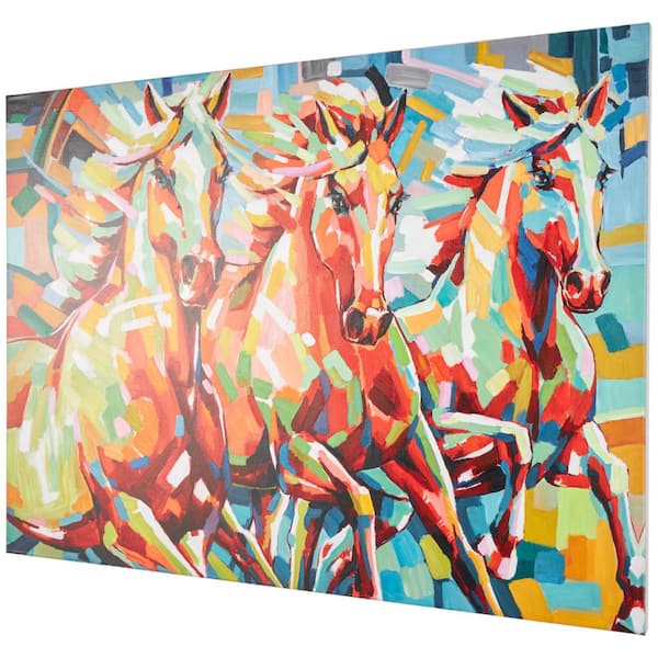 1- Panel Framed Horse Abstract Paint Splatter Art Print with Abstract Paint Stroke Design 36 in. x 47 in.
