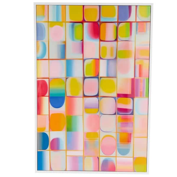 1- Panel Geometric Ombre Square Pop Art Framed Wall Art with White Frame 49 in. x 33 in.