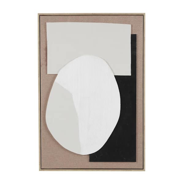 1-Panel Geometric Textured Framed Wall Art Print with Abstract Black and White Shapes 37 in. x 25 in.