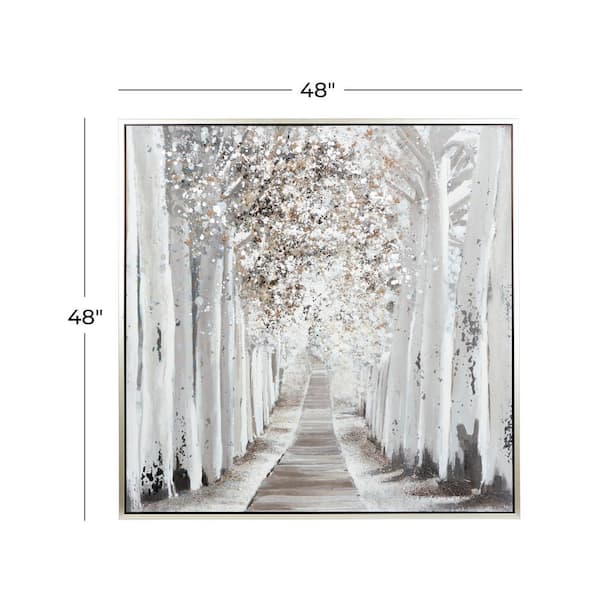 1- Panel Handmade Forest Framed Wall Art with Silver Frame 47 in. x 47 in.