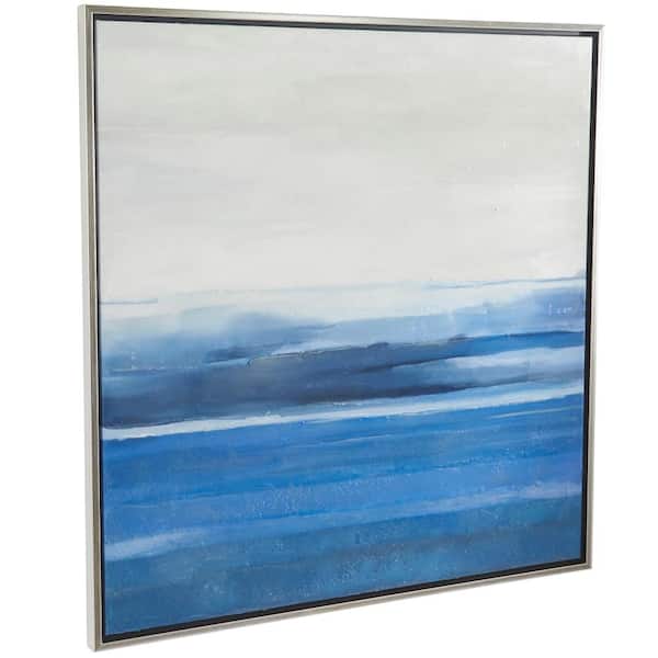 1- Panel Landscape Abstract Ocean Inspired Framed Wall Art with Silver Frame 37 in. x 37 in.