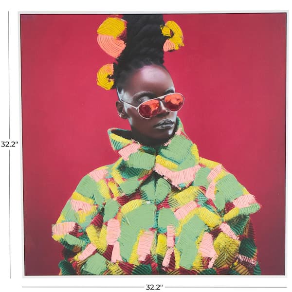 1-Panel Woman Chic Framed Wall Art with Green and Yellow Dresswear 32 in. x 32 in.