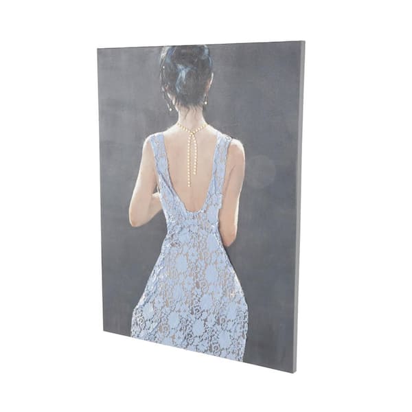 1-Panel Woman Framed Wall Art with 3D Blue Fabric Dress and Gold Jewels 48 in. x 36 in.