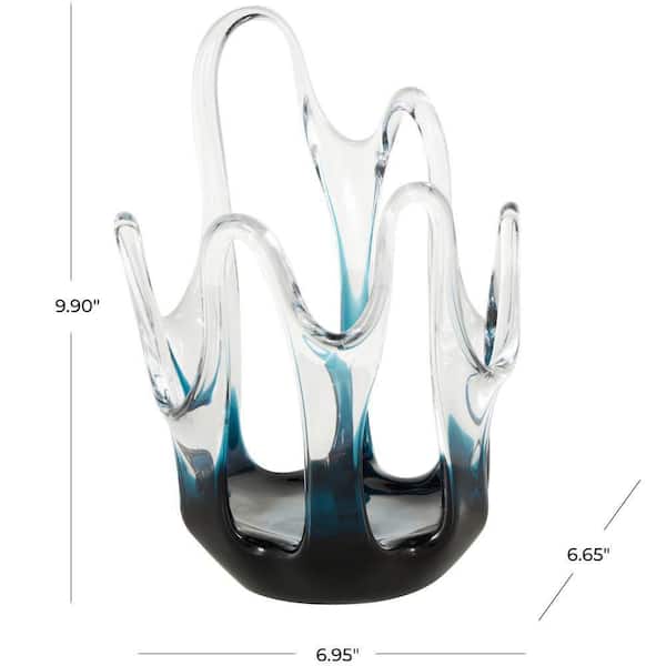 10 in. Blue Ombre Glass Abstract Decorative Geomtetric Vase with Wavy Oval Cutouts