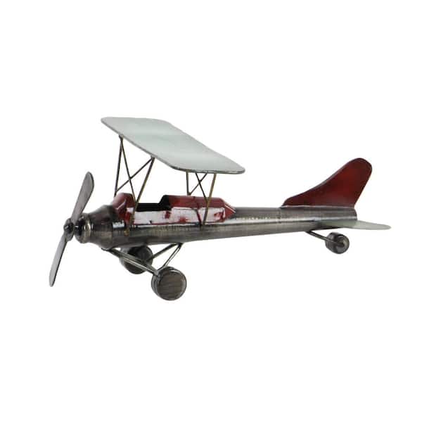10 in. x 6 in. Gray Metal Airplane Sculpture