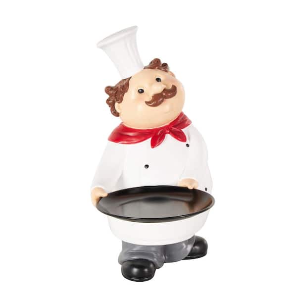 11 in. x 13 in. White Polystone Kitchen Decorative Figurine Chef Sculpture with Black Tray
