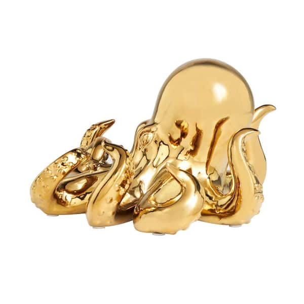 11 in. x 7 in. Gold Ceramic Octopus Sculpture with Textured Tentacles