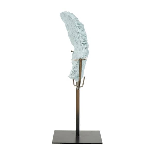 12 in. Light Blue Polystone Textured Coral Sculpture with Bronze Stand