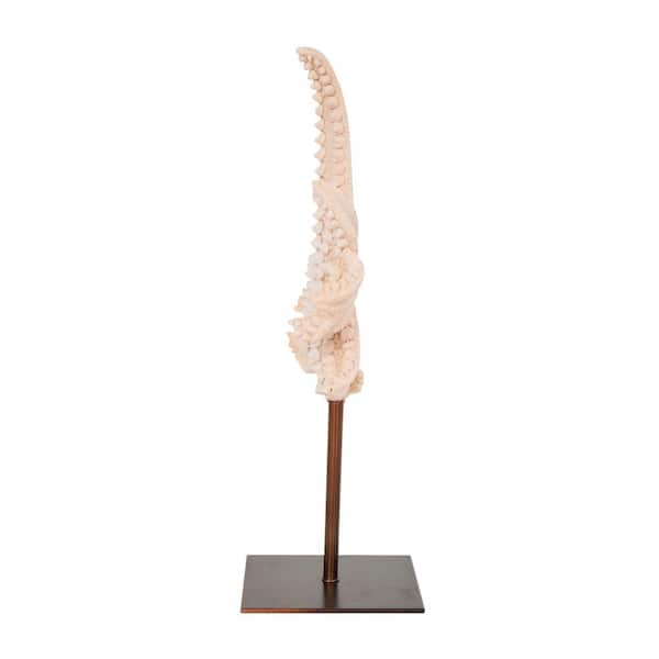 12 in. Pink Polystone Textured Starfish Sculpture with Copper Stand