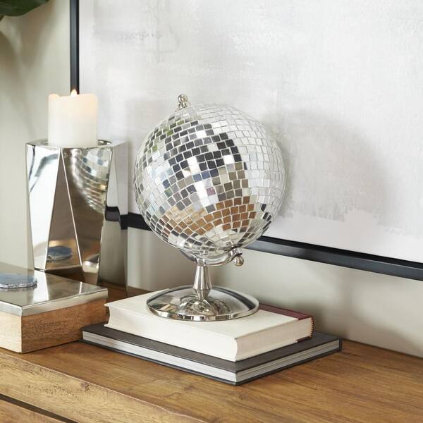 12 in. Silver Stainless Steel Disco Ball Style Decorative Globe