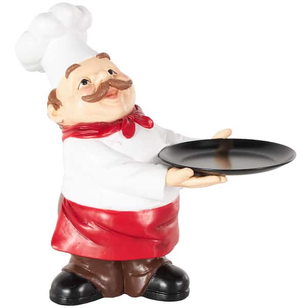 12 in. x 12 in. White Polystone Kitchen Decorative Figurine Chef Sculpture with Black Tray