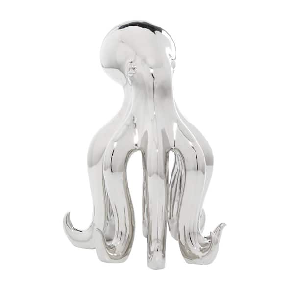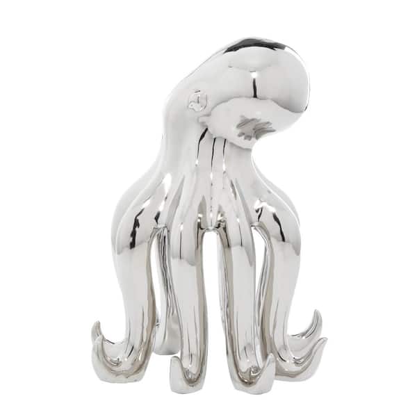12 in. x 17 in. Silver Porcelain Tall Octopus Sculpture with Long Tentacles
