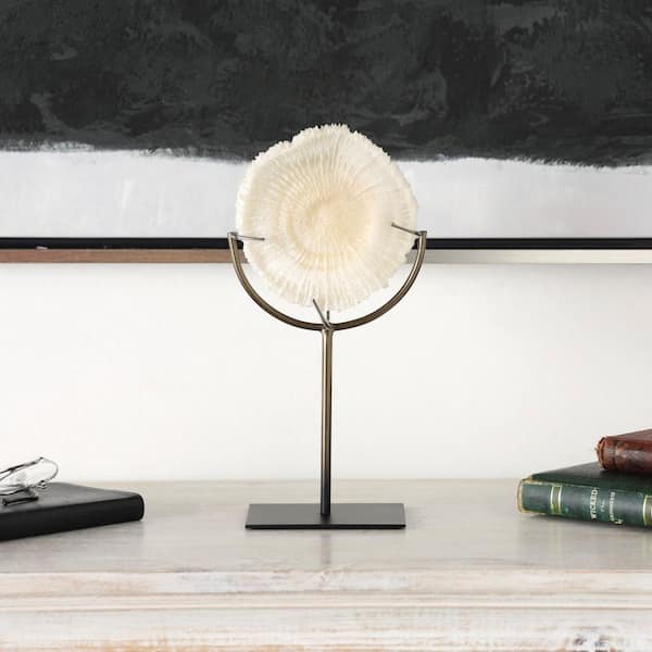 13 in. Light Blue Polystone Textured Coral Sculpture with Bronze Stand